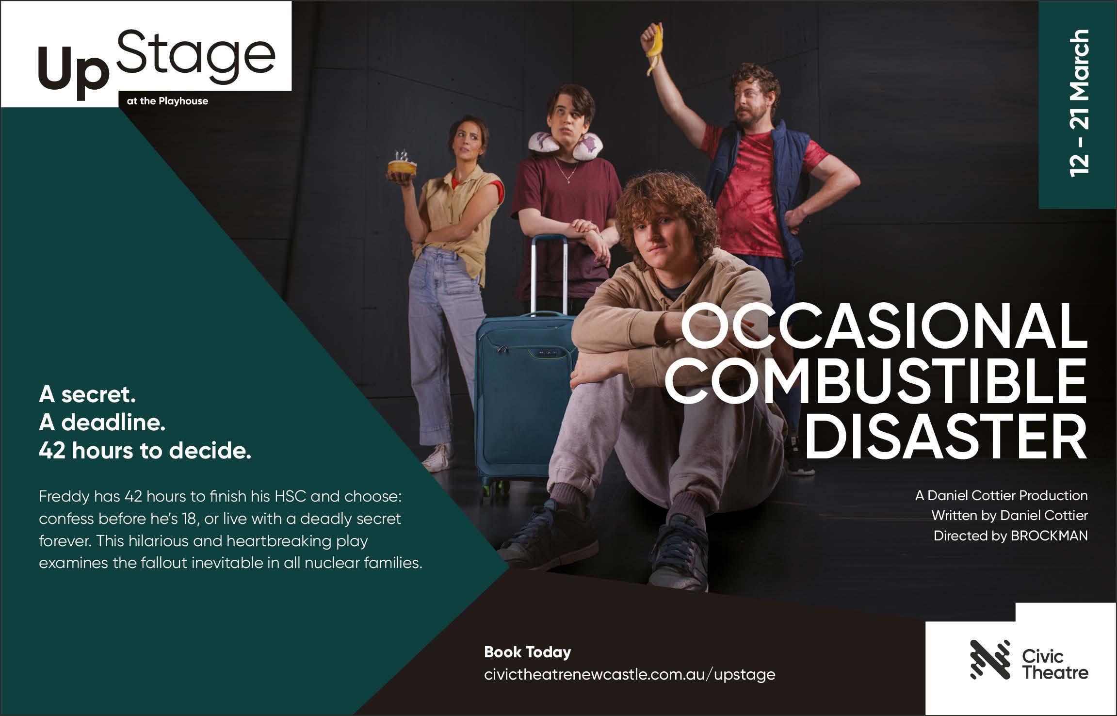 Beyond the Playhouse, March brings an extraordinary lineup to our cultural calendar. Newcastle Fringe Festival returns bigger and bolder than ever with 250 shows across three weekends (page 18), while Occasional Combustible Disaster – a debut work by Medowie playwright Daniel Cottier – promises to deliver both hilarity and heartbreak as it examines the inevitable fallout in all nuclear families (see page 10).