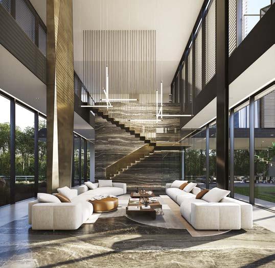 The epitome of wellness, Eden garden stays true to its name. Complete with exclusive amenities ranging from a concealed gym, garden spa, and car gallery, to a floating bridge and jacuzzi, every possible whim is catered for. One is completely seduced by ultimate relaxation. These features, combined with the estate’s expansive grounds, provide an escape where elegance meets functionality. As an architectural execution of a space that seems much more like an art form, one cannot help but appreciate the attention to each and every detail. Within this co-created and immersive environment displaying the intersection of native flora with modern design, whether lounging by the private pool or enjoying the tranquil waterway, residents are able to unwind with no room for distraction.