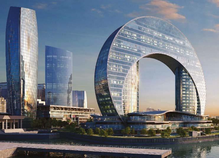 From a facade engineering perspective, Crescent is an exceptionally sophisticated project. Five customdesigned systems were utilised across the building, requiring an extensive architectural and engineering team for their development and execution. The crescent-shaped and inclined form of the hotel demanded non-standard facade solutions; the facade system was optimised according to the varying glass angles on each floor.