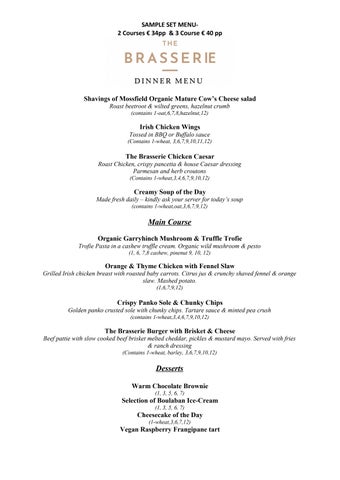 Radisson Limerick Set Menu