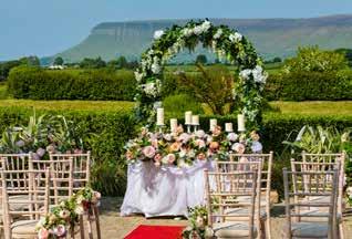 Arrive to a red carpet welcome and enjoy your drinks reception on a beautiful decking area framed with breathtaking vistas of Sligo Bay and Benbulben Mountain or within the stylish and luxurious surroundings of the hotel. A stunning floral archway frames the entrance to the Benbulben Ballroom, perfect for weddings of all sizes, complemented by crisp white linens, white chair covers and beautiful table centrepieces with flickering candles and stunning fairy lights adorning the room.