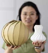 Recent graduate Huan Liu holds her curved origami model, an enlarged paper version of the metal brain stent she co-designed with Professor Richard James. Their origami-inspired stent unfolds with body heat to reinforce the artery walls and reduce blood flow to an aneurysm.