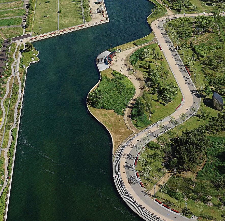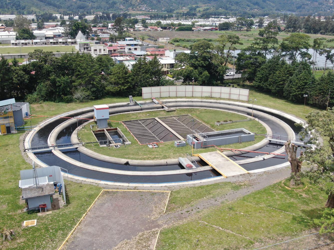Planta de tratamiento de agua y lagunas de retención de aguas pluviales.
