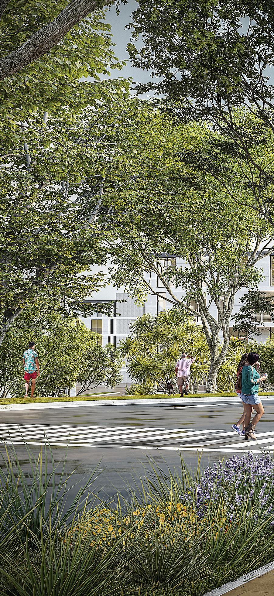 Centro de bienestar y deportes: Cancha de fútbol cinco. Cancha Multipropósito. Pista de Atletismo. Gimnasio al aire libre. Ciclovía. • •--+ 20.000 M2 DE ÁREAS COMUNES