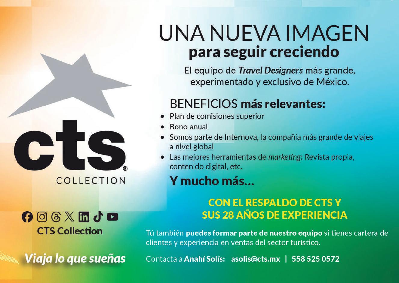 Como sabemos, CTS Collection, la Unidad de Negocios de Contactos de CTS cambió su nombre. “Así es, nuestra Unidad de Negocios dio un giro fresco con la introducción de esta marca, un nuevo concepto respaldado por CTS con 28 años de experiencia y su integración en Internova Travel Group durante los últimos siete años”.