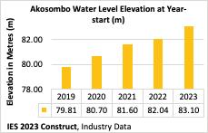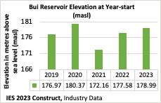 Data from Akosombo and Bui indicate elevations at the beginning of 2023 compared to previous years are in a better position to produce more electricity than the thermals. Bui's water elevation is expected to help produce more megawatts to meet increasing electricity demand at particularly peak hours, and extended mega