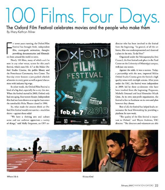 Oxford Film Festival is a local institution. The big festival itself takes place every February, and the organization has grown to offer year-round programming as well. The festival was featured on our cover in 2010. This year, it takes place Feb. 26-28. Learn more at ox-film.com.