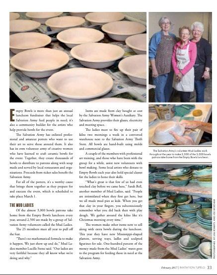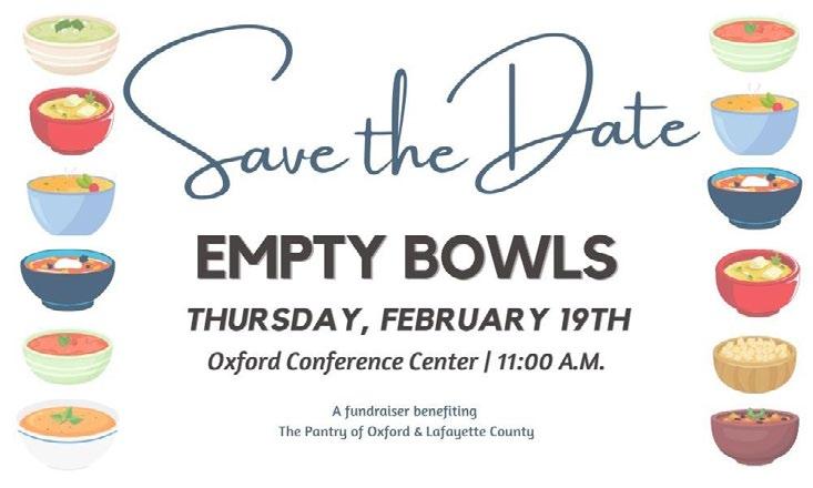 For years, we have covered Empty Bowls, a heartwarming fundraiser that has a special place in both the Oxford and Tupelo communities. This year, Oxford’s Empty Bowls event takes place at 11 a.m. Feb. 19 at Oxford Conference Center to benefit The Pantry. In Tupelo, Empty Bowls takes place 11 a.m.-1 p.m. March 4 at Tupelo Furniture Market to benefit the Salvation Army.