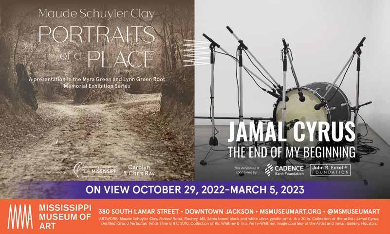 We are excited to feature the University of Mississippi Museum on page 44. Be sure to visit the museum online at museum.olemiss.edu for a sneak peek at some of the its collections, to subscribe to an email newsletter and to get a schedule of upcoming events.