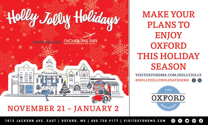 Oxford’s annual Holly Jolly Holidays includes skating at the Old Armory Pavilion on University Avenue. (The rink will be closed Thanksgiving Day, Christmas Eve and Christmas Day). Visit the website for details on more Holly Jolly events. visitoxfordms.com/hollyjolly
