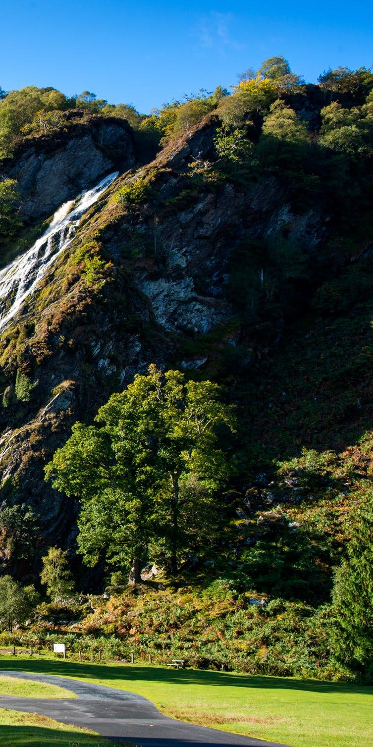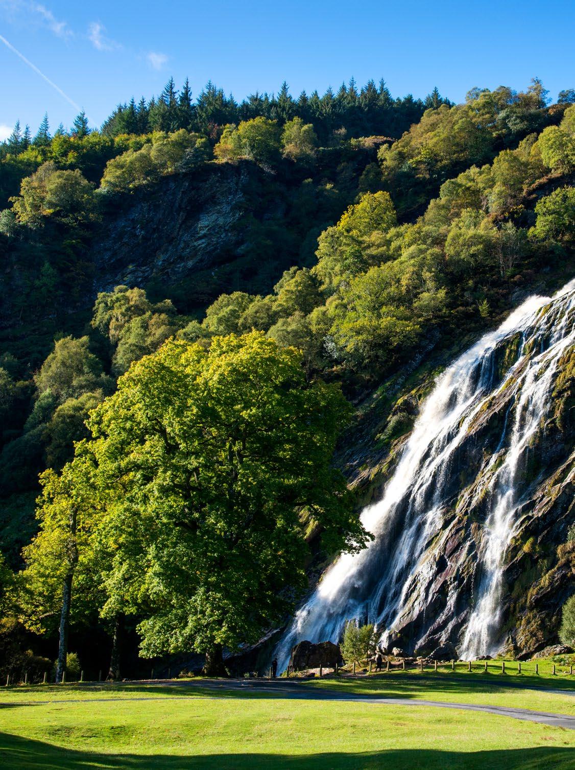 Asyou drive from the gate lodge towards the Waterfall you are surrounded by Beech, Oak, Larch and Pine trees some of which were planted over 200 years ago. Look out for the Giant Redwoods, which are native to Northern California where they may grow up to 80m high and live for 4,000 years so they are still youngsters!