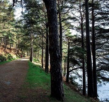 This trail follows the short cutting linking the Upper and Lower Vartry Reservoirs through 100 year old Scots Pine trees.