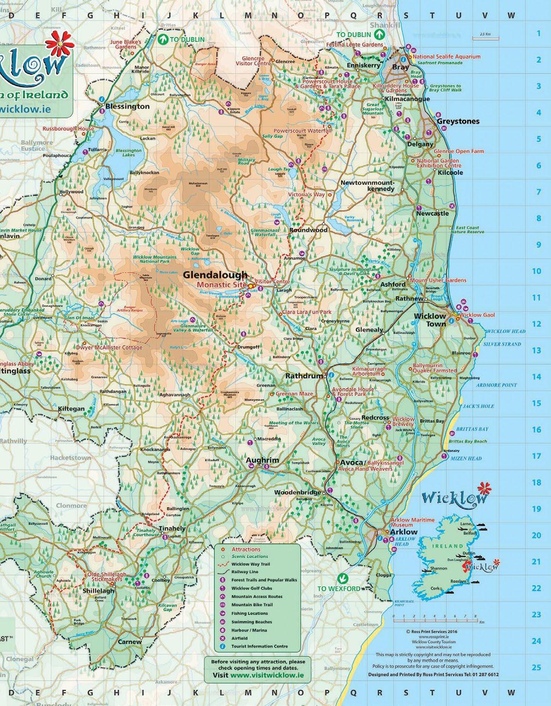 EWicklow is located thirty minutes South of Dublin City Centre. From Mountains to Sea, Wicklow’s landscape is unique: cliffs, sandy beaches, rolling mountains, hidden lakes, bogs, friendly villages, etc.