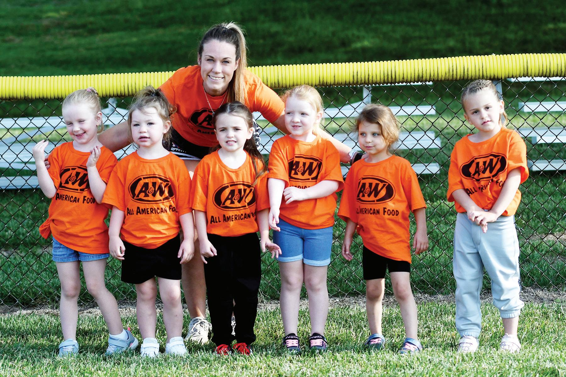 Front row from left, Brynleigh Borth, Faith Stinnett, Ellie Stinnett, McKenna Meiwes, Olivia Barker and Jerrica Curl; second row, Emily Heskett, Mary Burris, Kinsley Vance, Taygen Stroud, Kaylee Burris, Aubrie Heskett and Kimbree Daum; third row, coaches Brittney Meiwes, Kristi and Adam Borth, JoAnna and Johnnie Curl.