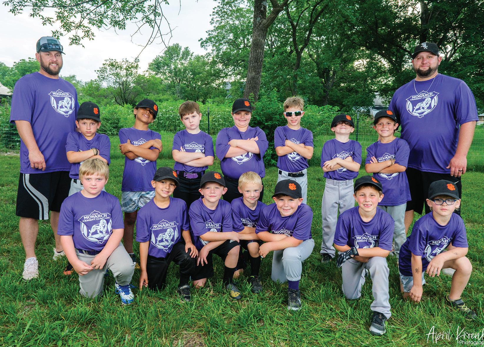 Front row from left, Huck Tidd, Jax Meats, Jett Rice, Jaxen Scheibmeir, Max Stinnett, Jaxson Burns, Hayes Chester, Burke Trammell, Brayson Cox; back row, coaches Tom Stinnett and Andy Chester.