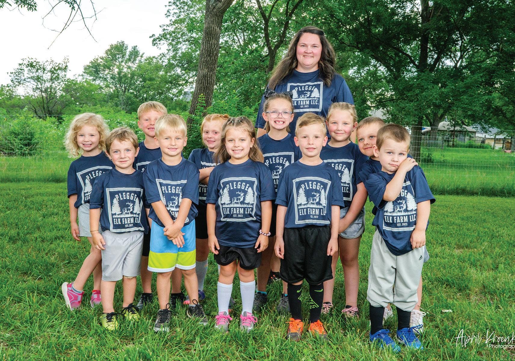 Front row from left, Mattix Wells, Rhett Newman, Breckyn Gean, Everett Covey and Owen Jadwin; second row, Evelyn Sollars, Ebben Cole, TaeLynn Lord, Ryleigh Plegge, Addilyn McNeal and Cole Myers; back, coach Julie Plegge.