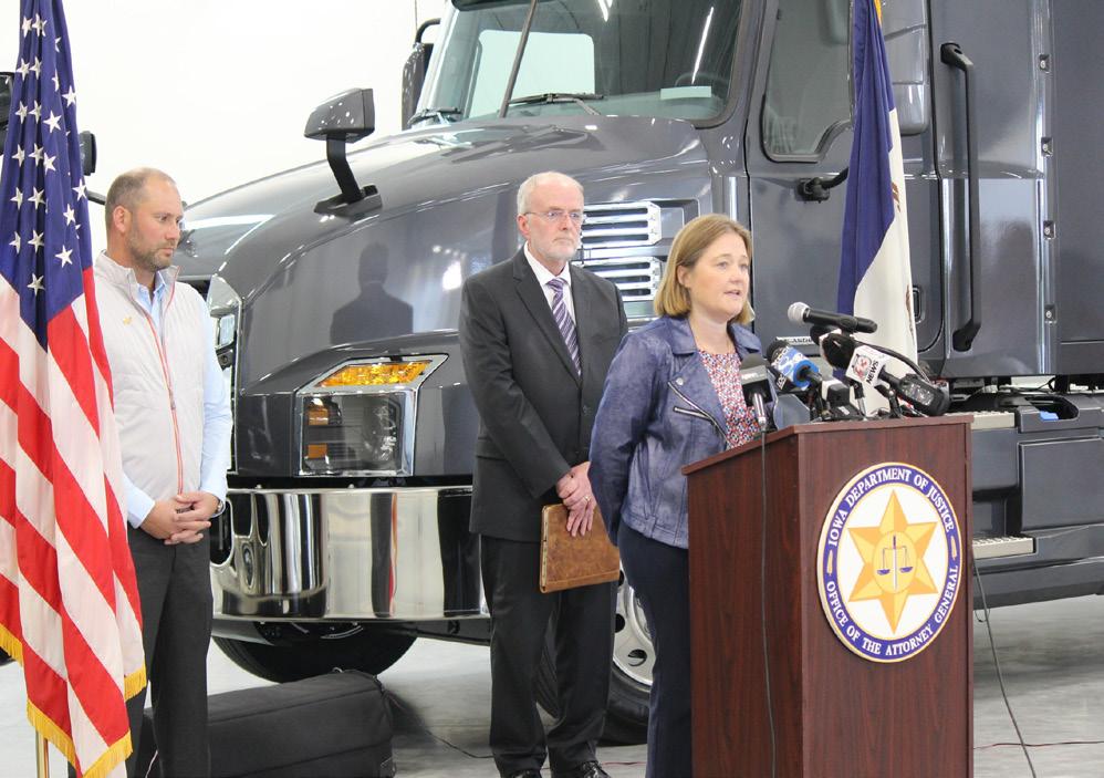 Iowa Attorney General Brenna Bird sues California to hit the brakes on its green fleet fantasy and stand up for Iowa truckers. The 17-state lawsuit challenges California’s mandate that forces truck fleets, even those based outside of California, to be all-electric by 2042. The lawsuit was announced at a press conference in Ankeny, where she was joined by Scott Szymanek, chairman for the Iowa Motor Truck Association, and Dale Decker, CEO of Decker Truck Line.