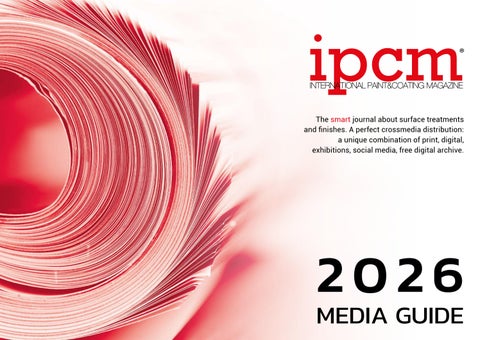 ipcm® is the only international magazine for painting, coating, and surface finishing technologies circulating all over the world. ipcm® feature topics contain technical, scientific and practical information on all kinds of surface technologies: pretreatment/cleaning, wet coating, powder coating, coil coating, anodizing, E-coat, electroplating, thin coating, paint stripping, blasting, sanding, chemicals, raw materials, pigments, paints and coatings, measuring, testing, materials handling, application machines and equipment, coating facilities, IR/UV technology.