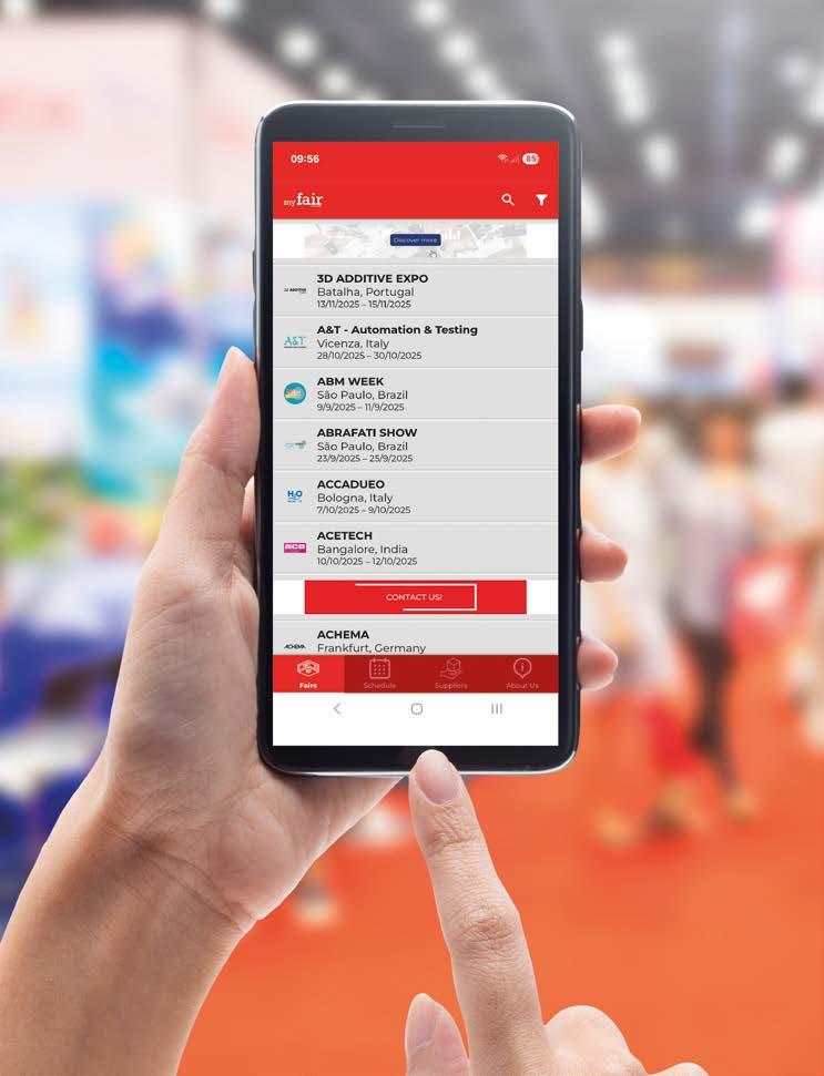 myFAIR is a free web app that can be accessed from both desktop and mobile devices, which allows you to stay up-to-date with the leading events of the surface treatment sector.