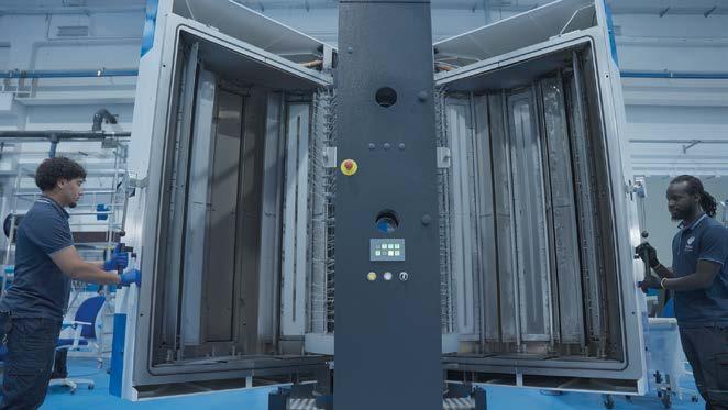 Europa di Dürr. “Oltre a conferire il colore, fornisce la necessaria conducibilità. Considerando che le sedie, tra altri ambienti, vengono utilizzate in camere bianche e in aree con protezione contro le scariche elettriche, è essenziale che non si generino cariche elettrostatiche”.