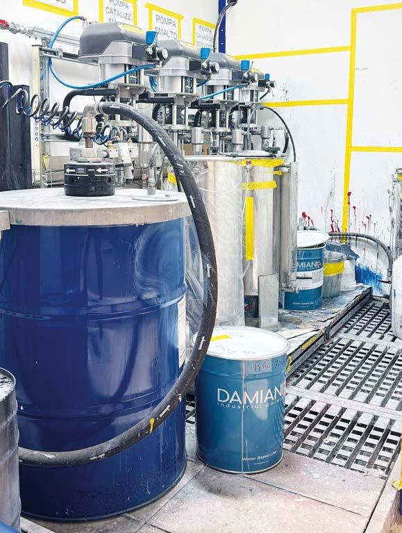 Interstuhl, i sistemi di alimentazione sono inoltre dotati di pompe di dosaggio della serie EcoPump9, oltre a valvole e gruppi di cambio colore: componenti che hanno particolarmente impressionato l’azienda. Il loro impiego è giustificato dal fatto che il materiale di verniciatura utilizzato presenta requisiti speciali: è difficile da sciacquare, indurisce rapidamente e tende ad ostruire le valvole.