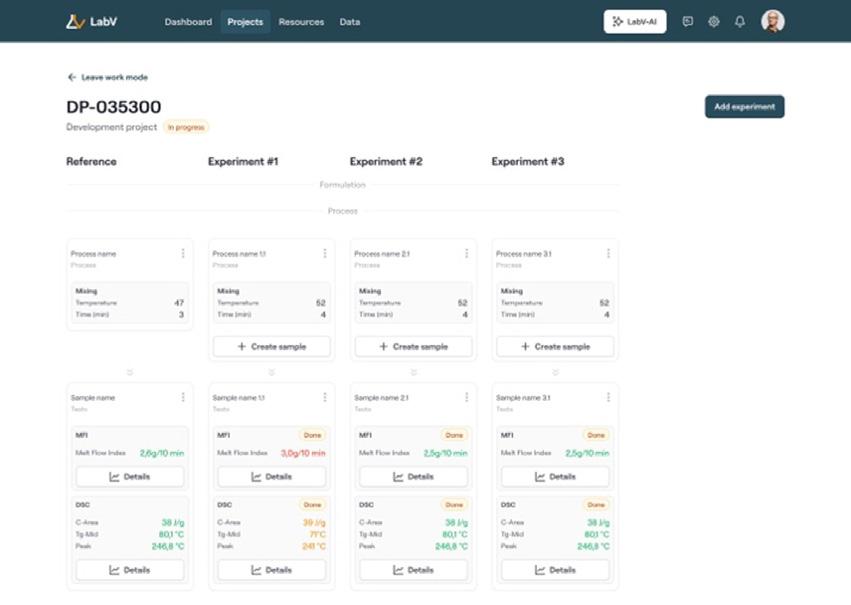 Tuttavia, un archivio centrale rappresenta più di un semplice principio organizzativo, promuovendo un reale incremento dell’efficienza nella ricerca e nello sviluppo. Quando i dati vengono raccolti e consolidati in modo centralizzato, non aumentano soltanto trasparenza e comparabilità, ma migliorano anche in modo misurabile l’efficienza e la rapidità dello sviluppo di prodotto. Più concretamente, la piattaforma di material intelligence LabV rende i processi di sviluppo fino al 40% più efficienti, poiché le informazioni sono fornite in modo