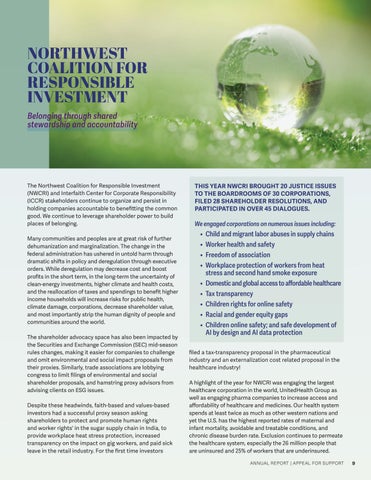 The Northwest Coalition for Responsible Investment (NWCRI) and Interfaith Center for Corporate Responsibility (ICCR) stakeholders continue to organize and persist in holding companies accountable to benefitting the common good. We continue to leverage shareholder power to build places of belonging.