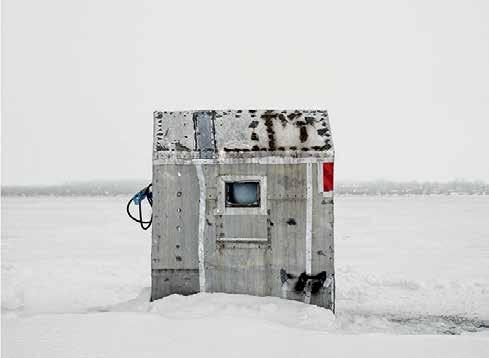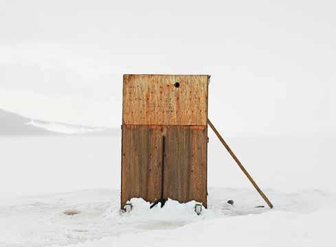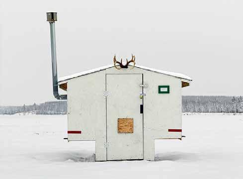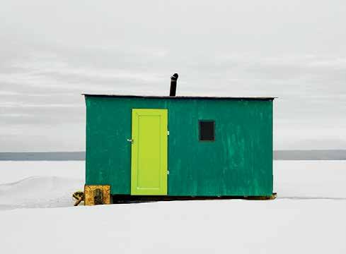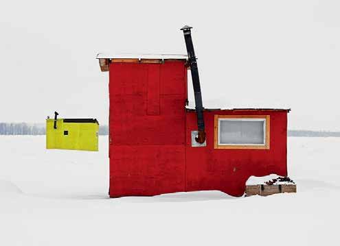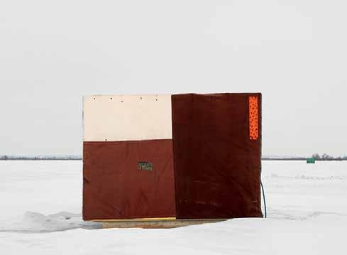 ABOVE Johnson’s photographs treat ice fishing huts as architectural objects that share an archetypal form and typological clarity.