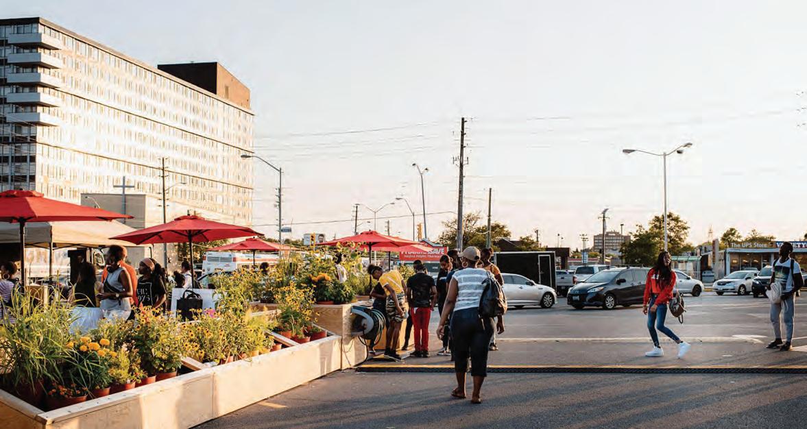 Collaboratively designed with a working group comprised of local residents, business owners, and community organizations, Wex POPS popped up for six weeks, transforming 10 parking spaces at Wexford Plaza, an iconic strip mall in the eastern borough of Scarborough. Throughout the installation, the site was programmed by events, concerts, and other community initiatives.