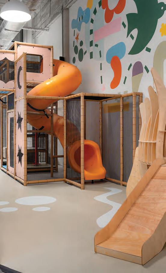 At its centre, Adventure Alley features a lounge where parents can work, relax, or observe their children. Unlike traditional playspaces that cater exclusively to kids, Adventure Alley was poised to appeal equally to caregivers from the start. The goal: “to think about them as a whole, [as] a full entity,” said Leventhal. “That’s how you attract people.”