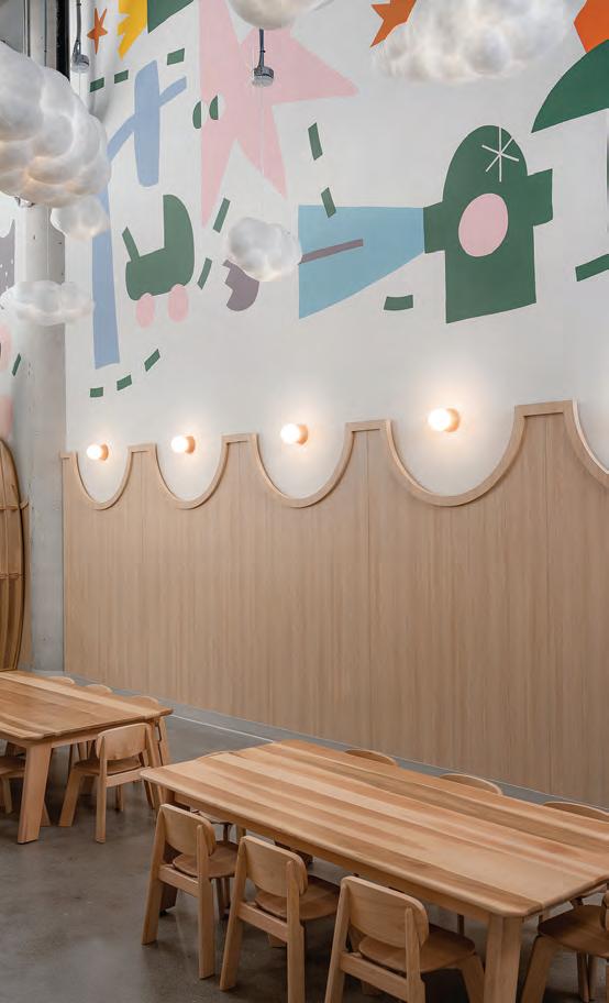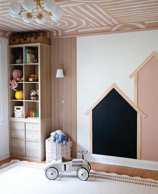 tive while maintaining a serene aesthetic.” says co-founder and lead designer, Jenny Huggon. To balance the environment with opportunities for play, the design team incorporated a chalkboard wall meant to be an interactive detail to encourage creativity. One of the challenges was balancing the imagination of childhood with the sophistication of enduring design. The approach was to weave subtle gestures of play into an elevated framework. “Designing for a twoyear-old is unique. You want the space to feel magical now, but you also must think several years ahead. Avoiding anything too themed or age-specific required an intentional approach, where every element needed to feel playful without becoming something she would outgrow quickly,” says Huggon.