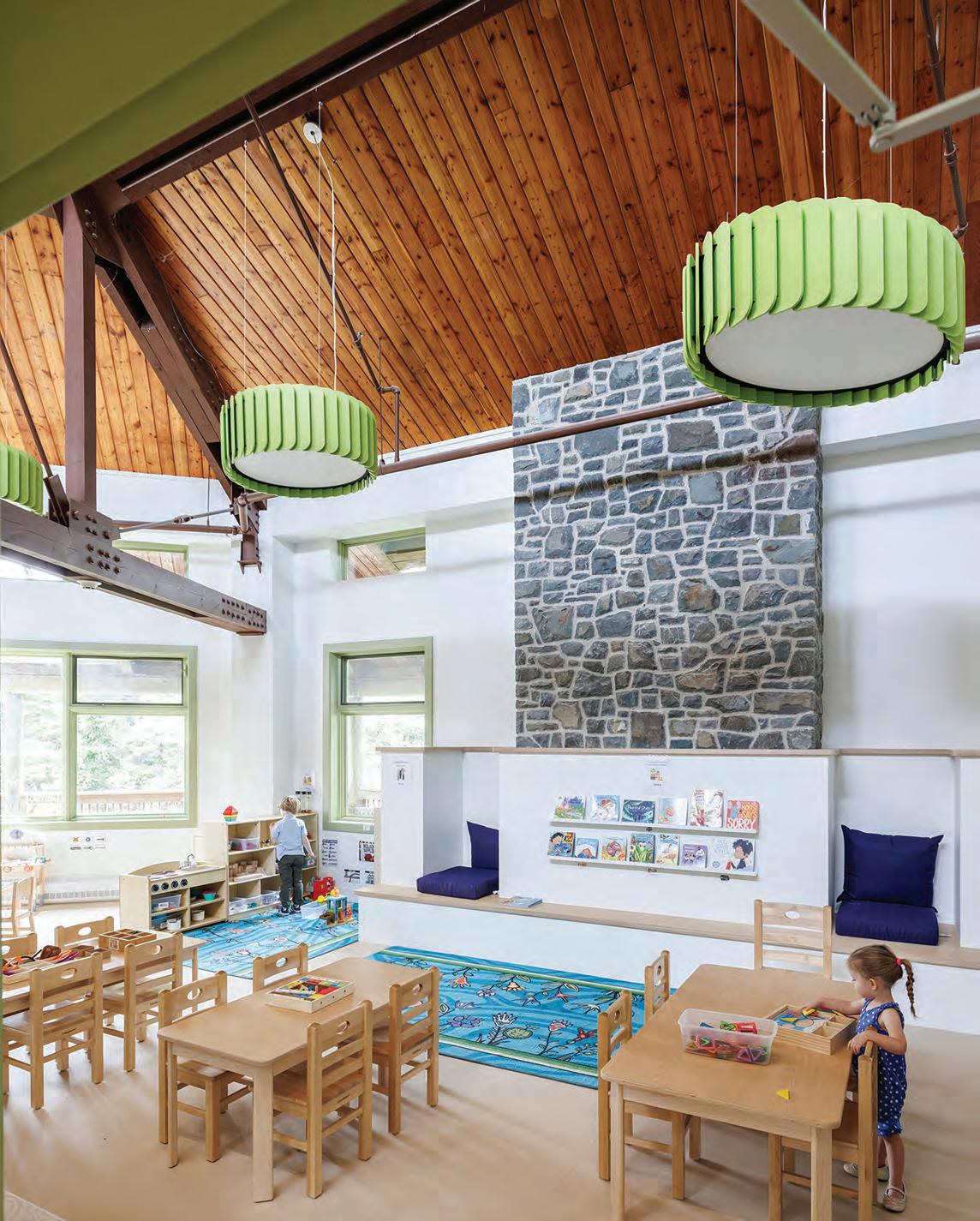 The first challenge was to work with three branches of government — the city, province, and department of education — as well as the fire department, to determine how best to integrate a childcare facility on the top floor of a three-storey building that’s also used as a public museum. “Assembly and care are as far apart as you can get in the building code,” said Chris Woodford, architect at St. John’s-based Woodford Architecture, who led the design alongside architect Devan