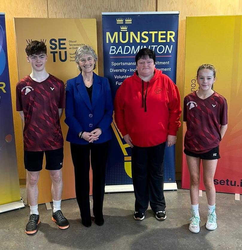 Congratulations to Gneeveguilla who were champions of the Juvenile Sports Hall games at MTU, Tralee. Accepting the Tracey Pigott Memorial Shield from Kerry athletics chairperson Teresa Higgins Walker were Sheila O’Donoghue, Sean Murphy and club athlete Grace.