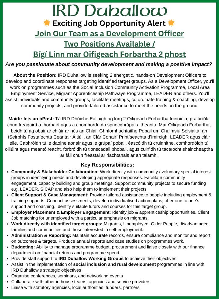 in partnership with IRD Duhallow, building on strong regional experience in employment activation and inclusion supports.