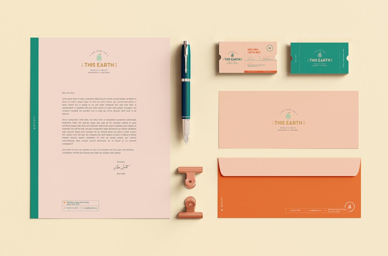 The name “This Earth” is a wordplay of “dessert”. Sweet and refreshing, bright pastel colors are used as the brand color scheme alongside elements of nature and island silhouettes as supergraphics design.