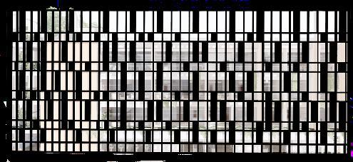 THE PATTERN USED AS A BUILDING ENCLOSURE WAS INSPIRED FROM THE NOTES IN A MUSIC BOX WHICH ARE AROUND FROM ALUMINUM PANEL WITH WOOD PATTERN