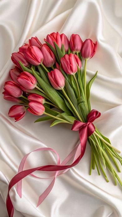 El tulipán es una flor elegante con forma de copa. Crece a partir de bulbos que se plantan bajo tierra. Es muy famosa en países como Holanda, donde se cultivan grandes campos llenos de tulipanes.