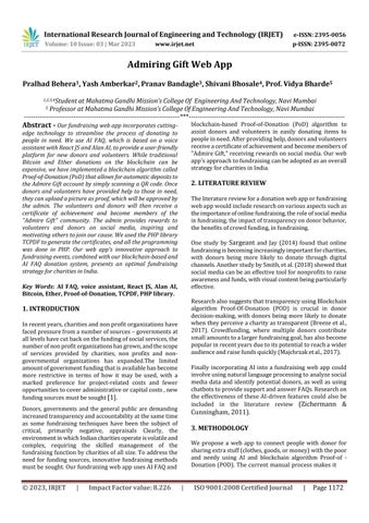 International Research Journal of Engineering and Technology (IRJET) is an peer reviewed, open access, Multidisciplinary journal in English for the enhancement of research in various discipline of Engineering, Science and Technology. Prime Focus of the Journal is to publish articles related to the current trends of research . IRJET brings together Scientists, Academician, Engineers, Scholars and Students of Engineering Science and Technology.Published by Fast Track Publications