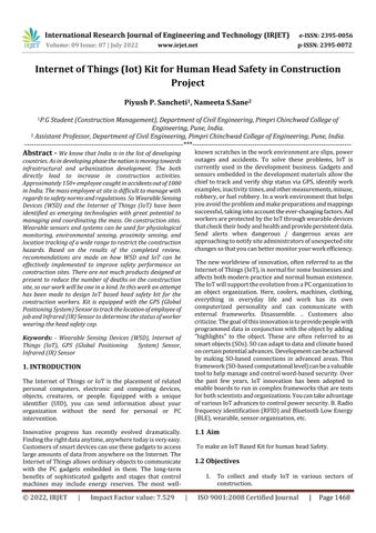International Research Journal of Engineering and Technology (IRJET) is an peer reviewed, open access, Multidisciplinary journal in English for the enhancement of research in various discipline of Engineering, Science and Technology. Prime Focus of the Journal is to publish articles related to the current trends of research . IRJET brings together Scientists, Academician, Engineers, Scholars and Students of Engineering Science and Technology.Published by Fast Track Publications