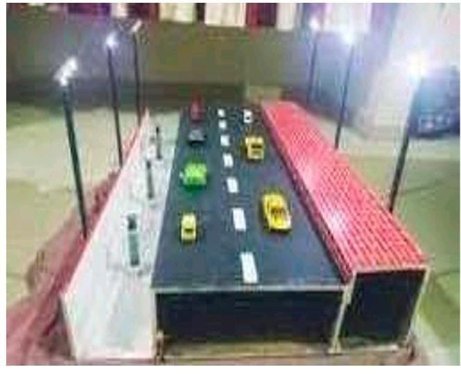Our project uses the basic principles of hydraulics, particularly Pascal’s Law, which states that pressure appliedtoafluidistransmittedequallyinalldirections. The model includes a road setup with footpaths equipped with syringe-based hydraulic jacksthatactas pistons.Inemergencies,thefootpathtemporarilylowers to align with the road surface, allowing emergency vehiclestopass.