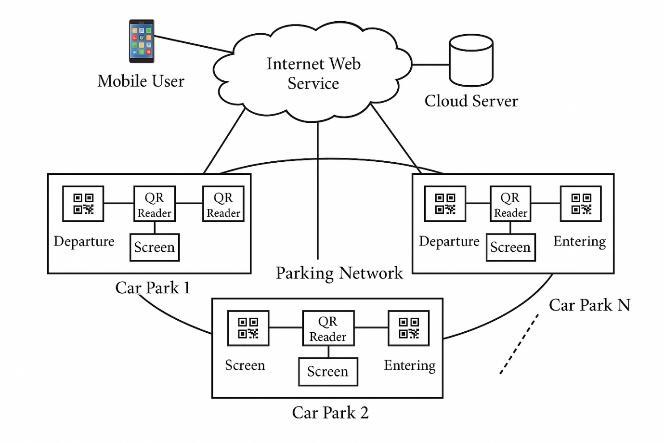 TheFigure1depictsthegenerallayoutoftheintegrated smart parking scheme, which is the result of the proposedresearch.ThesystemisdesignedtoutilizeIoT, blockchain, and QR code technologies to deliver secure, transparent, and efficient parking operations. On the user side, the driver is the one who makes a parking request by simply scanning a unique QR code that is assigned to the vehicle. After receiving this request, the