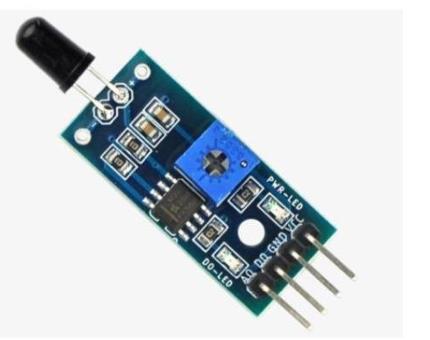 One common detection method used is the infrared flame flickertechnique,whichallowsthesensortofunctionevenin challengingconditionslikethepresenceofdust,oil,moisture, or ice. A flame sensor is highly sensitive to visible and infrared light, making it suitable for flame detection applications.Thesesensorscanidentifylightwavelengthsin therangeof760nmto1100nm.Duetotheirsensitivityto heat,theymustbeinstalledatasafedistancefromtheflame source typically up to 100 cm, with a detection angle of around 60°. Flame sensors can produce either analog or digital signals as output. They are frequently used in firefightingrobotsandautomatedflamealarmsystemsfor earlyfiredetectionandresponse.[8]