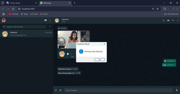 Key Words: Artificial Intelligence, Phishing Detection, WhatsApp Web, Deepfake detection, Google safe browsing API, Zego Cloud, URL detection, Image detection