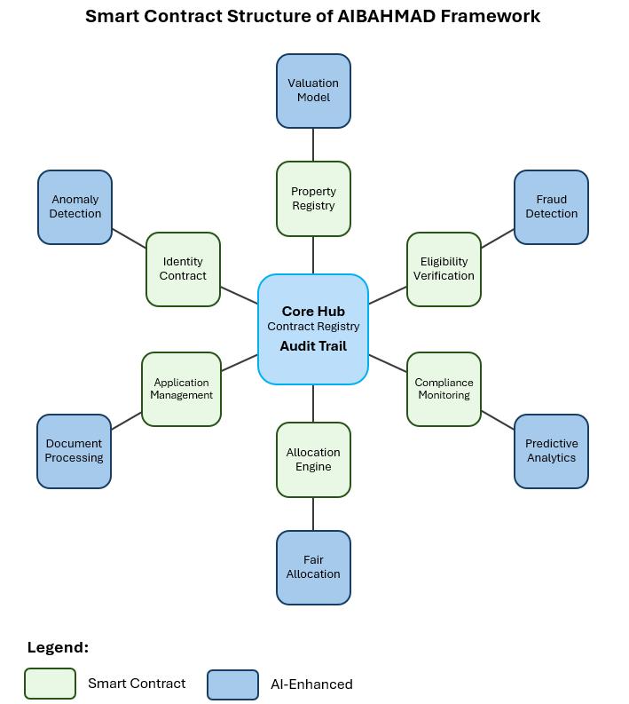 AIBAHMADinfrastructureframeworkisageneralframeworkintegratingblockchainwithartificialintelligenceforsecureand transparent, cost-effective, and affordable housing management, which was presented in this research. The framework approachesthesetechnologiesinanewwayandmeetslongstandingsectoralchallenges.
