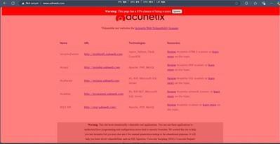 PotentiallyfraudulentbyaScamDetectorbrowser extension, which has determined that the page has an 85% chance of being a scam. The webpage belongs to vulnweb.com, a wellknown test site used for web vulnerability scanning and security research, specifically for tools like Acunetix Web Vulnerability Scanner. The interface is heavily altered by the extension,witharedbackgroundandawarningbanneratthe top,emphasizing thescamprobability.