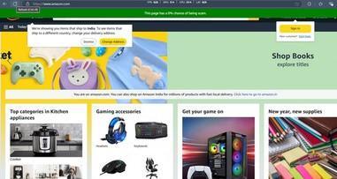 Amazon website being evaluated by a Scam Detector browser extension, which has determined that the site has a 0% chance of being a scam. The extension adds a greennotification banner at the top, indicating that this websiteisconsideredcompletelysafe.