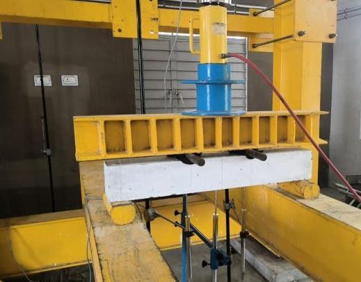Twofull-scalereinforcedgeopolymerconcretebeamswere cast, one without fibers (GPC–SF 0%) and the other with 0.75%hooked-endsteelfibers(GPC–SF0.75%).Thebeams weretestedundertwo-pointloadingusingahydraulicjack. Linear Variable Differential Transformers (LVDTs) were placedatL/3,L/2,and2L/3positionstomeasuremid-span deflections.Thefirstcrackload,ultimateload,crackpattern, andmaximumdeflectionwererecordedforanalysis.