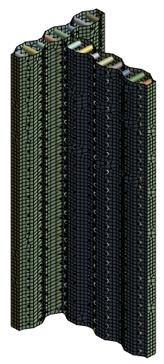Toevaluatetheaxialcompressiveperformanceofthenovel bi-directionalcorrugatedSSCPWs,advancedfiniteelement simulationswereconductedusingANSYSWorkbench2024 R2.Non-linearanalysisisemployedtoinvestigatetheplastic behaviour of bi-directional corrugated stainless steel core plate walls, specifically in T-shaped and L-shaped