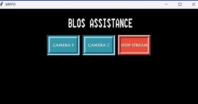The main application window (`root`) is created using Tkinter,withspecificconfigurationssuchassize,title,and background color. The GUI includes a label indicating the purpose of the application ("BLOS ASSISTANCE") and buttons for controlling the streaming process for each camera stream, as well as a button to stop the streaming altogether. These buttons are styled with custom fonts, colours, and dimensions to enhance the visual appeal and userexperience.