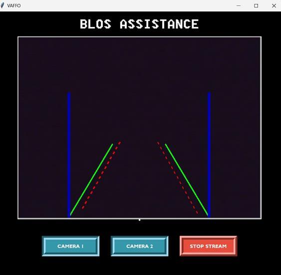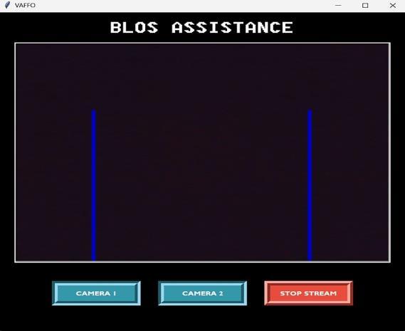 The main application window (`root`) is created using Tkinter,withspecificconfigurationssuchassize,title,and background color. The GUI includes a label indicating the purpose of the application ("BLOS ASSISTANCE") and buttons for controlling the streaming process for each camera stream, as well as a button to stop the streaming altogether. These buttons are styled with custom fonts, colours, and dimensions to enhance the visual appeal and userexperience.